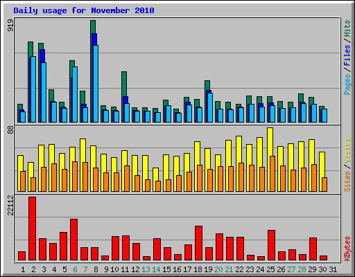 | Day | Hits | Files | Pages | Visits | Sites | KBytes | ||||||